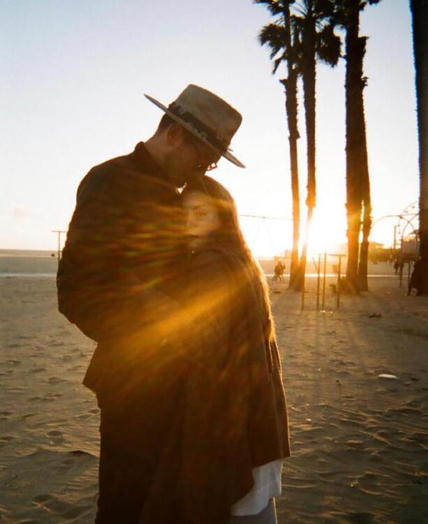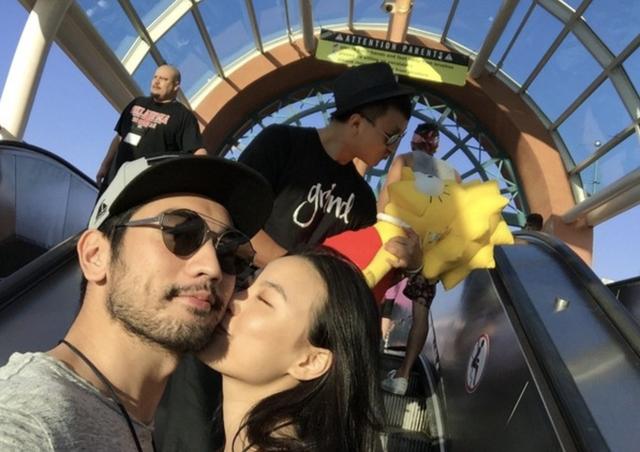 以下两张是二人的合照,高以翔身高195cm,Bell像小鸟般依偎在以翔怀中,多么温暖的大男孩。在夕阳余晖下,二人拥抱在一起,多么唯美的画面,只是这一切都不能再重现了。