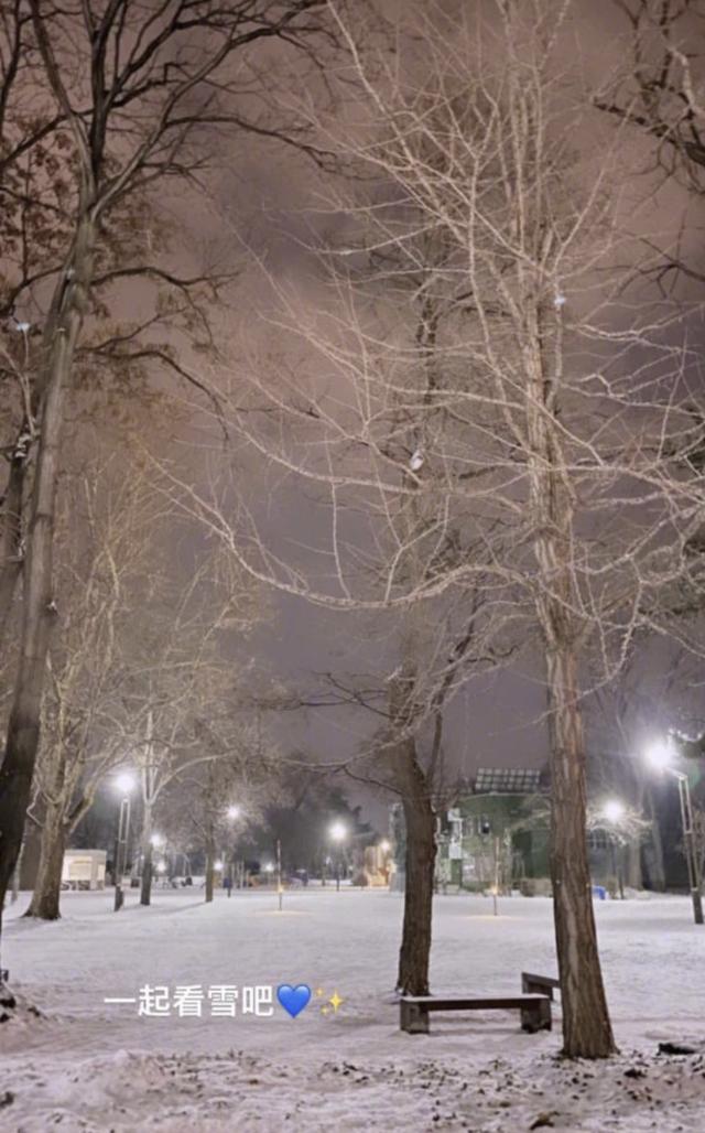 前几天Bella还在即时动态中晒出雪照,配文“一起看雪吧”,想表达的意思大家自然明白。