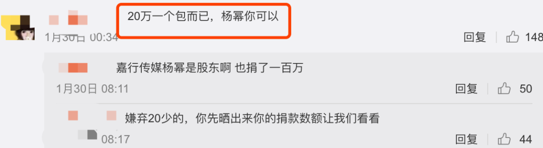 杨幂捐20万,不少人都觉得,这个是最基础的捐款数目,和杨幂一线女星的身份一点都不符。特别是这几年她片约不断、综艺不停,钱肯定没少挣。