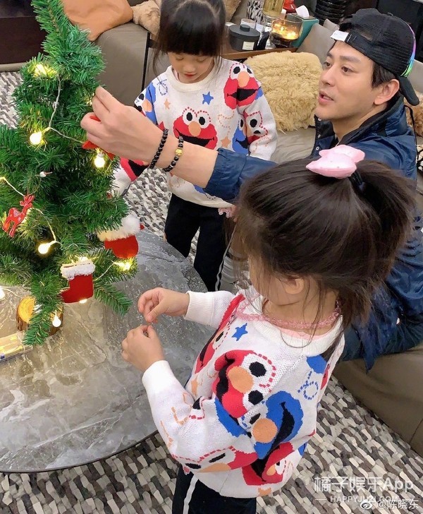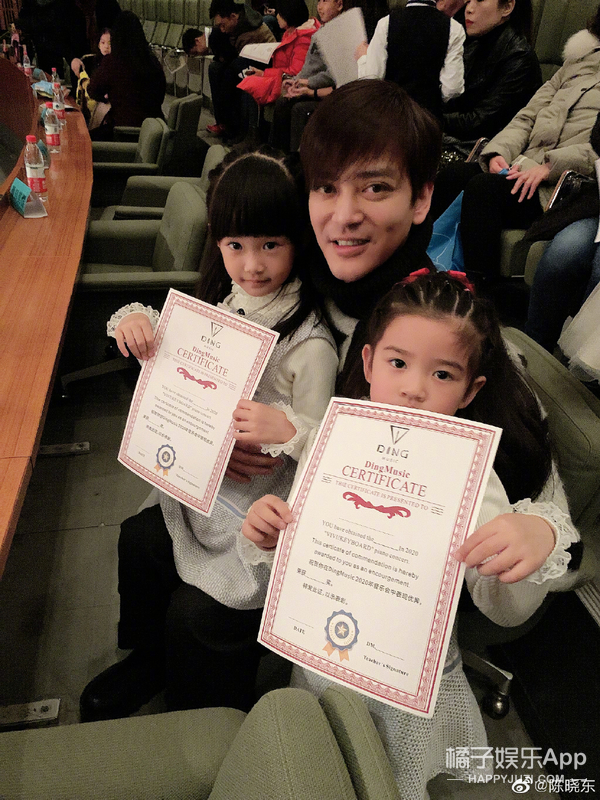 陈晓东也很爱晒娃,经常在微博上秀一家四口。