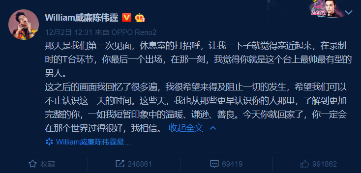 而高以翔正也因为他的温柔和性格,促使那些即便有过一面之缘,甚至是不曾了解的他的人,都愿意在其离世后,送上最诚挚的希冀,而这一点,从陈伟霆、徐梦洁等仅仅只是一起参加节目,却有无数真心话想要送给高以翔来看,可见一斑。