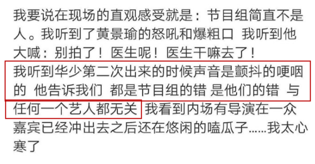 当然,又何止是他们呢,其实在那天一同目睹高以翔离世的人们,他们大部分心中其实或多或少都有愧或者是惋惜,主持人华少也依然如此。
