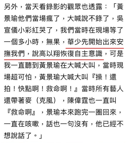不过,华少其实在这件事上也有不小的争议,据当时现场路透得知,在高以翔出事的时候,为了维持现场稳定,其实是华少第一时间声称高以翔已经恢复意识。