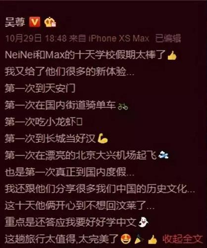 吴尊一直都尽量在用自己的方式,做到两边都能兼顾,每次只要有充足的时间,他便争分夺秒地和家人待在一起,前段时间和孩子们去北京,不仅全程拍照,还认真记录下相处的点点滴滴,字里行间能让人感受到温暖的快乐。