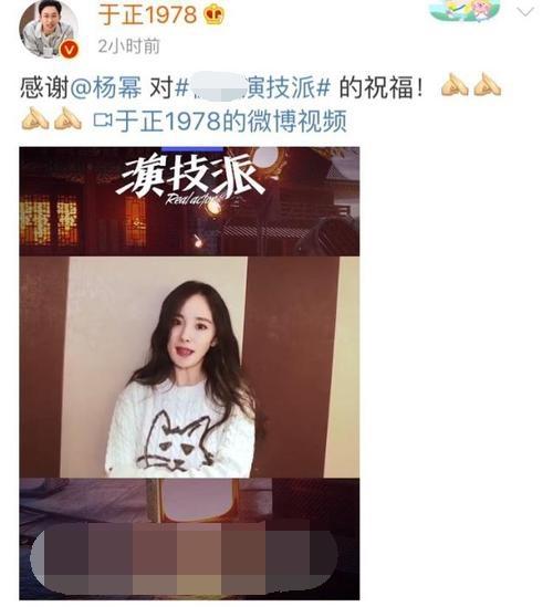 《演技派》首播,杨幂、赵丽颖、冯绍峰等从于正作品中走出的当红明星都发来了视频祝福,给节目开了一个红火的好头,也从侧面印证了于正虽然在社交媒体上毒舌犀利,但是圈内人缘却异常的好。