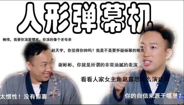 一向怼天怼地的“于妈”在节目里也毫不客气,面对选手开启了人形弹幕机模式,犀利吐槽选手“我要你演爱情戏,你演得像个老母亲”,“你就是所谓的非常油腻的表演”。