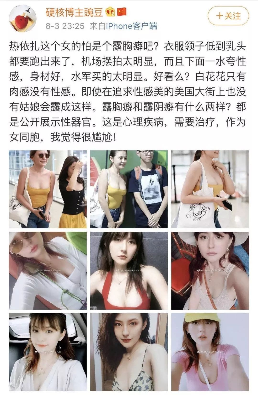 这位“硬核”博主疯狂在微博上恶意中伤热依扎,最开始就源于热依扎的机场事件。