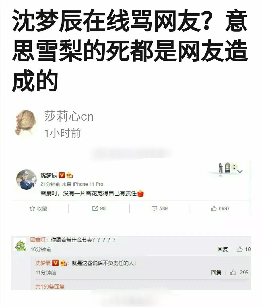 沈梦辰刚发完微博,就有人上赶着来骂她蹭热度了。