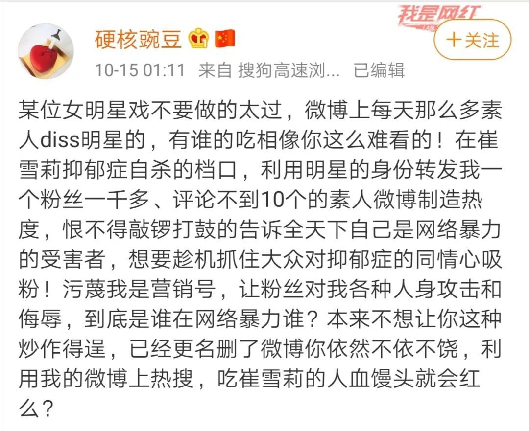 雪莉的离世,引发了不少网友对网络暴力的声讨。然而才过一天,就有人蹭着雪莉的热度,继续辱骂起了其他人。