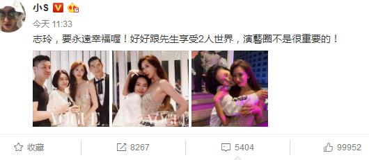 所以林志玲的婚礼,小S不仅带着丈夫许雅钧亲自出席,晚宴上还一起跳舞亲密合影,第二天小S还发微博祝福林志玲新婚快乐,但还是忍不住加了一句“演艺圈不是很重要的”调侃让祝福变成了劝退演艺圈,迅速引来很多网友围观,因为这中间有个梗就是林志玲是小S认为演艺圈最美最多才多艺的,所以她劝林志玲结婚后退出演艺圈,她就可以当演艺圈第一美女了。