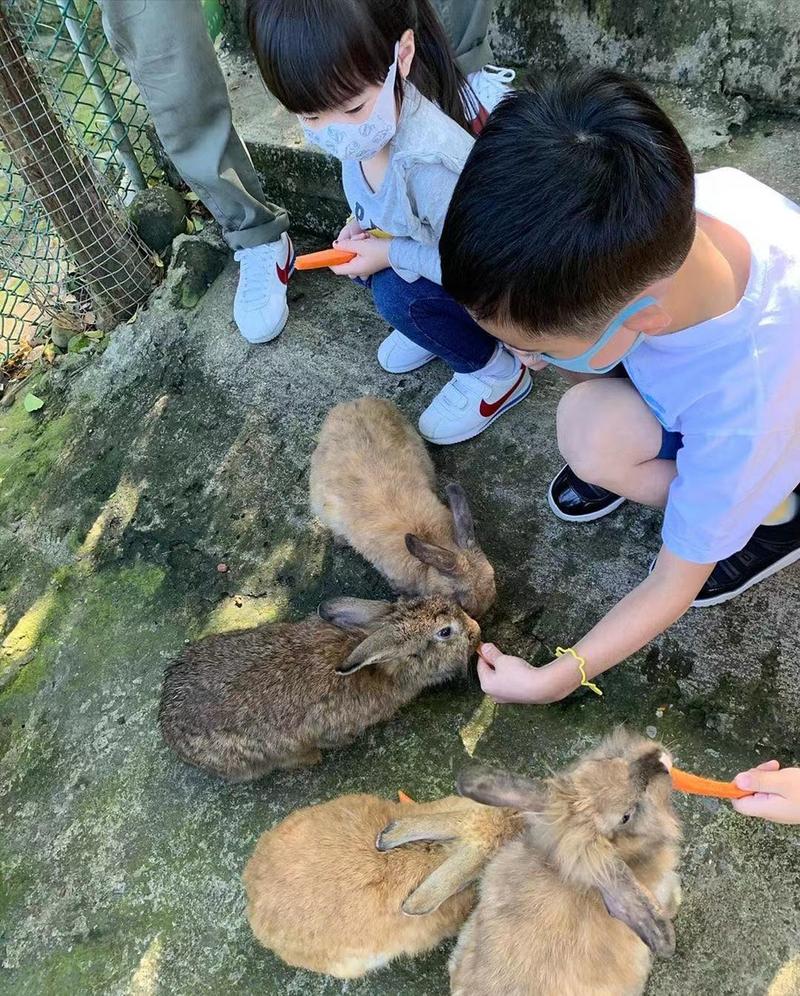 随后五岁的儿子还与其他小朋友一同喂兔子吃食,小朋友们看起来都是非常开心,与小兔子的互动更是游刃有余,看了大家都非常喜欢小动物呢!
