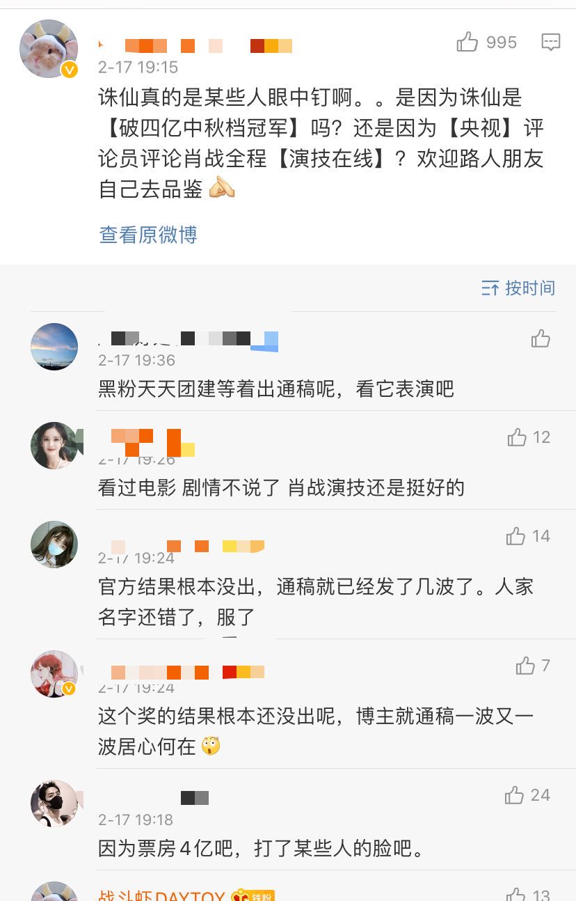 粉丝们还是有很多不满,认为奖还没有出,很多营销号都在发布《诛仙1》获奖的消息,认为对这部电影有成见。