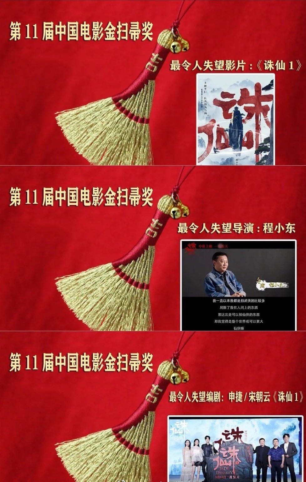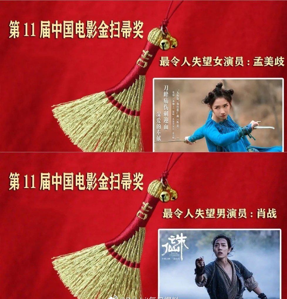 第十一届中国电影金扫帚出炉,《诛仙1》拿下五个大奖,分别是最令人失望影片、最令人失望导演、最令人失望编剧以及最令人失望男演员和女演员,爆红人气演员肖战拿了个最差,而首度触电的孟美岐也获得一个最令人失望女演员奖。