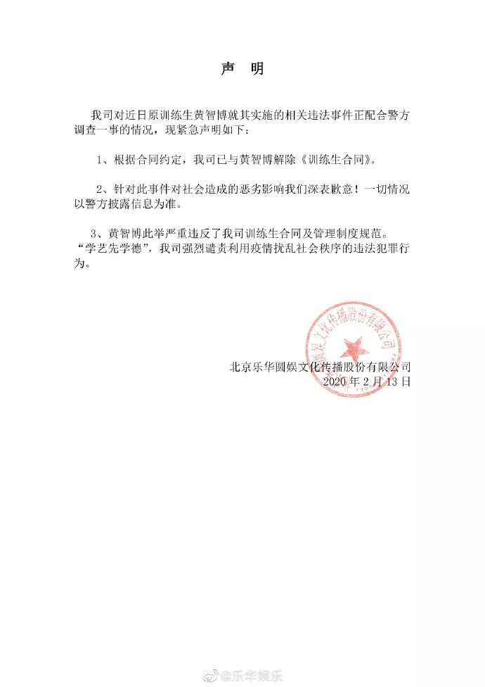 某经纪公司倒是干脆,第一时间发布了解约声明。