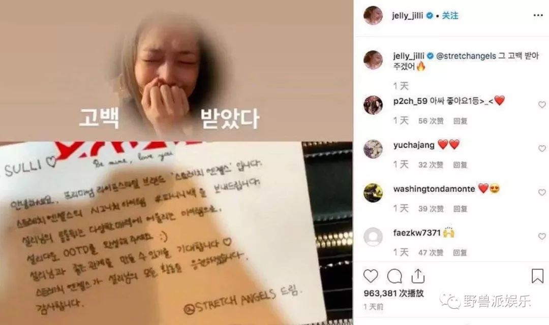 10月12日,雪莉在IG上晒出粉丝送给她的礼物,写道:“我接受你的告白”,这也是她最后一条社交互动内容。