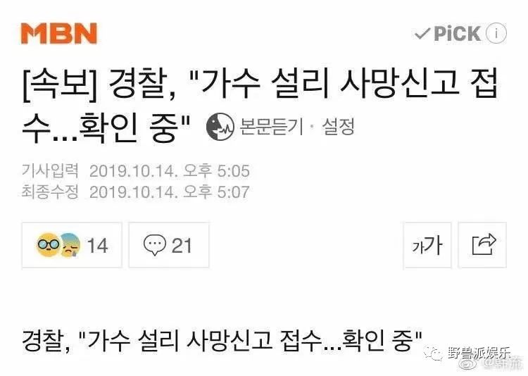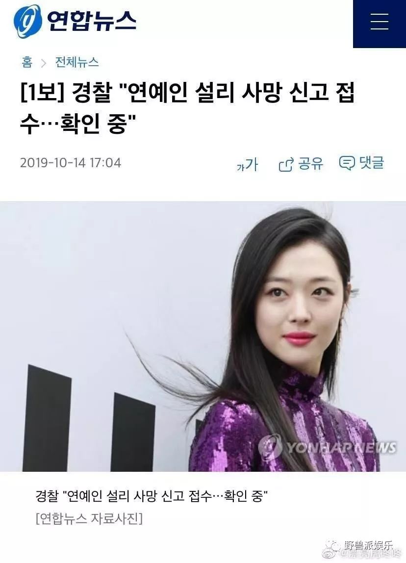 今天下午,韩国女艺人雪莉在首尔的公寓上吊自杀,享年25岁。