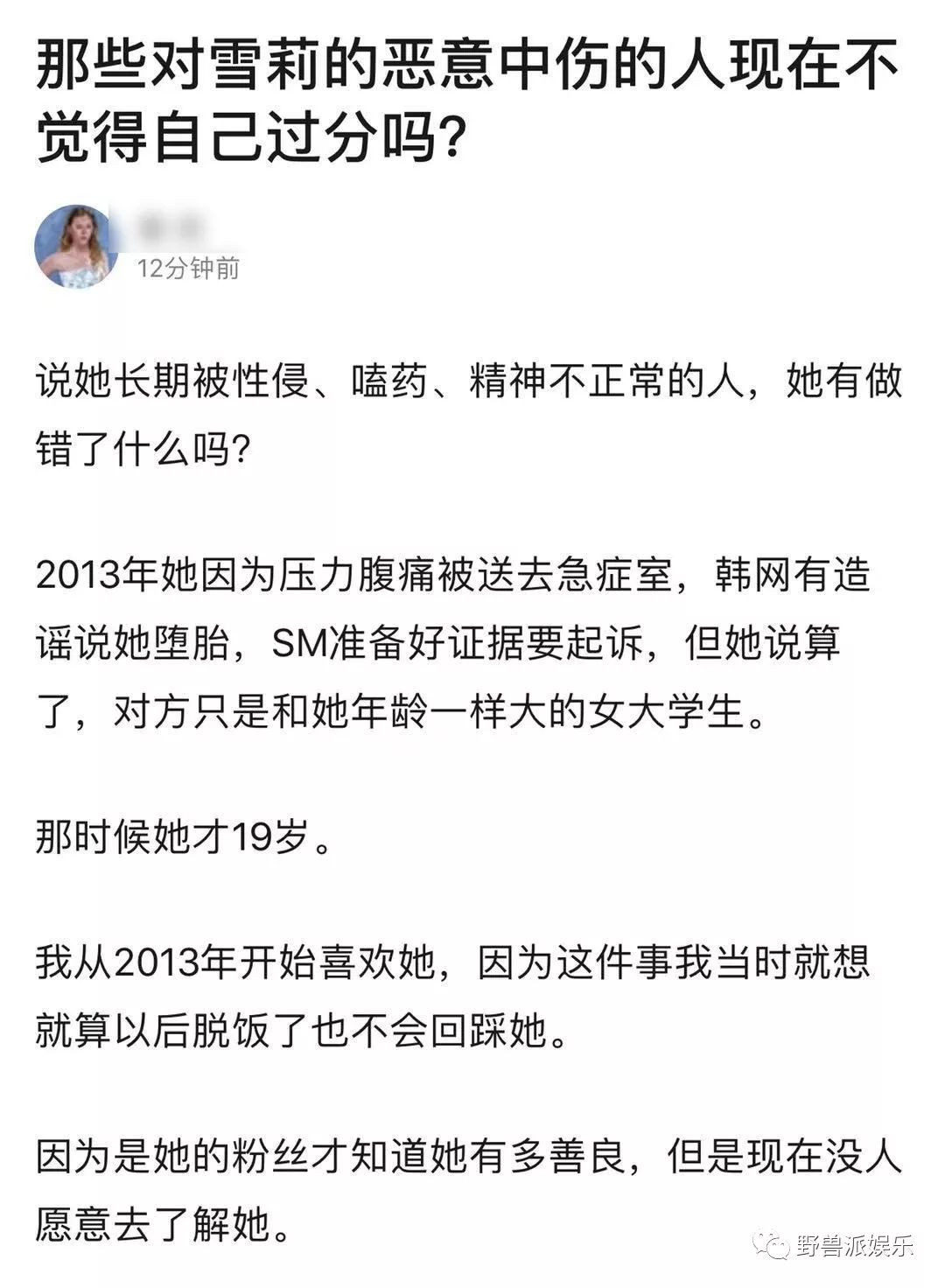雪莉确认死亡后,有网友就发帖表示,那些对雪莉的恶意中伤的人现在不觉得自己过分吗?