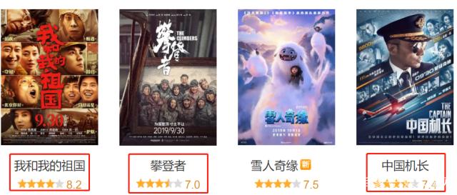 就题材方面而言,国庆档三强基本都属于纪实电影,当然《我和我的祖国》是记录的历史上最经典的七大瞬间,《攀登者》与《中国机长》则都是根据真实故事改编而来。如今电影已经上映二天,三部电影的口碑评分也已更新多次,据最新数据显示《我和我的祖国》评分为8.2、《攀登者》评分为7.0、《中国机长》评分为7.4,这也从侧面反映出三部电影的优秀程度。