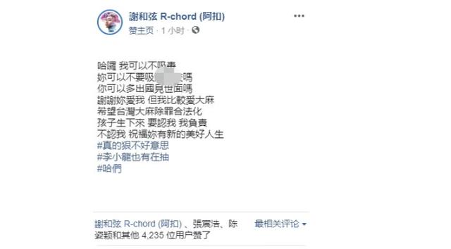 被问到变心的理由,谢和弦则表示道不同不相为谋,他透露,每次跟Keanna吵架,对方都会用报警威胁他,谢和弦直言跟妻子没感情了。网友批评谢和弦浪费老婆的时间还了没,却依然遭到对方呛声,“她才浪费我做音乐的时间。”