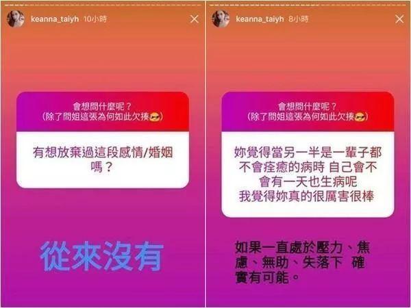 2017年,谢和弦躁郁症差点发作,又是Keanna将他从失控边缘拉回来。今年2月份又来一次,陪伴在谢和弦身边的依然是Keanna。当时谢和弦还说感谢妻子一路上不离不弃的陪伴,也感谢上帝,派了一位天使来当自己的老婆。