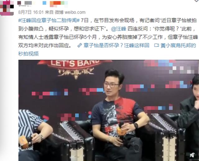 这段时间不断有媒体发现章子怡小腹凸起疑似怀孕,虽然媒体和粉丝不止一次询问此事,但当事人们一直含沙射影不正面回应此事。此前在8月上旬,在一场节目发布会现场,记者向汪峰询问此事,而汪峰则用四句反问“你觉得呢?”回应此事。当时便有网友透露章子怡已经怀孕5个月,为安心养胎推掉了不少工作。