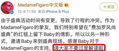 许是事件的影响过大,盛典官方也出面为baby解释,希望大家不要过度解读。