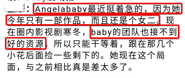 甚至还有声音说在某剧中,一向站c位的baby都开始出演女二号了。