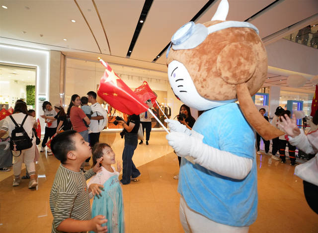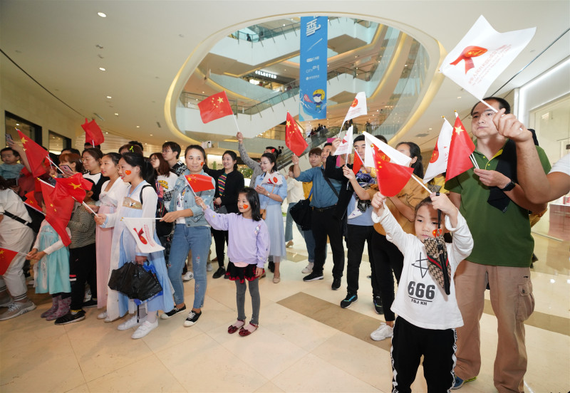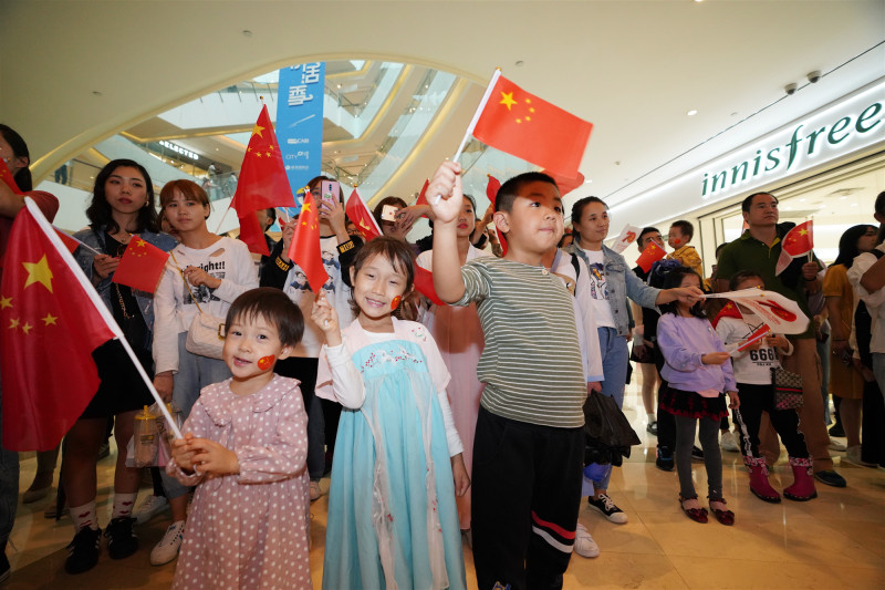 一位年轻妈妈告诉工作人员,今日是国庆第一天假期,带着孩子出来放松,遇到这样一场快闪活动,很欣喜也很感动,被现场火热的气氛带动,打心底里为祖国自豪!