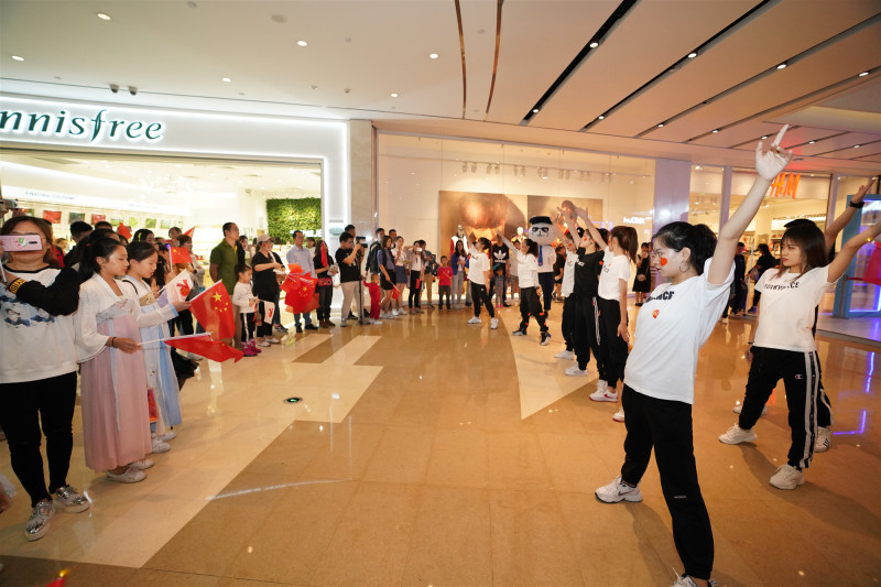 值得一提的是,参与此次街舞快闪的小哥哥小姐姐们,都是狂热的舞蹈爱好者,他们听到有这样一次活动,从城区各地迅速集结,穿着统一服饰,为营造节日气氛,还为自己脸上画了小国旗。