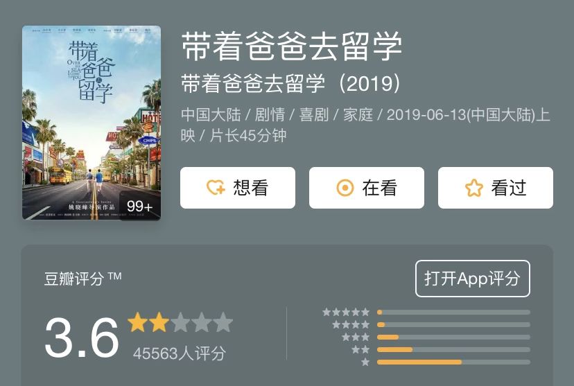《带着爸爸去留学》,豆瓣评分只有3.6分,这对于一个保口碑的演员来说,无疑是事业的滑铁卢。之后的电影《飓风营救》、《老手》等,都没有掀起水花。