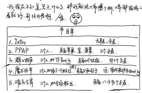 说要爆个料,结果就是手绘一个节目单,料还爆得特别细节,演出要用什么道具都能写上去。节目组怕是要哭晕在厕所。