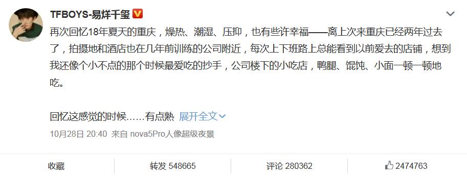昨天晚上,千玺为自己的新电影《少年的你》发了篇长文,细数去年拍摄时候的二三事。