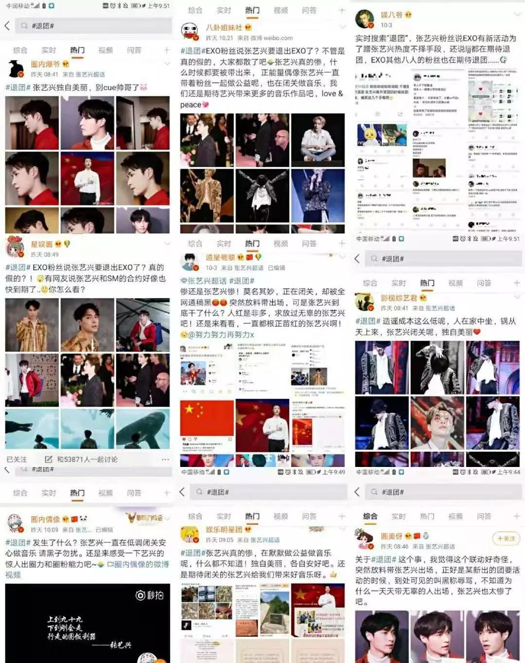 “实时搜索‘退团’,都在说张艺兴要退出EXO。”