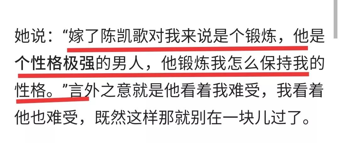 本以为洪晃会成为“名门淑女”而洪晃却把自己活成了像小说中的人物成为大众眼里的“名门痞女”,大胆走风敢爱敢恨从不掩饰自己的情感,曾辞去年薪18万美金的首席代表职位陪陈凯歌导演走过最艰难时期,在陈凯歌拍完《霸王别姬》大火时期而洪晃反而主动提出离婚,在别人劝和时洪晃自己表示还是因为两人性格不合适,两人相处尴尬分开理所当然,在采访中洪晃称“嫁了陈凯歌对自己是个锻炼,与陈凯歌相处之中学会如何保持自己的性格”。