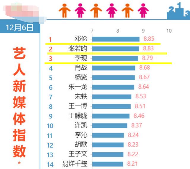 然而在艺人新媒体指数上看,李现热度还是要比张若昀低些,而李现主演的《剑王朝》首播的时候也没能因为剧情和收视率上热搜。