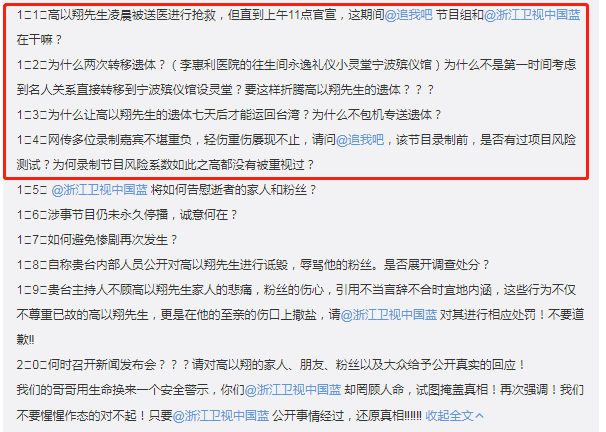 但其实高以翔的逝去还是存在着诸多的疑点,就这些疑点,高以翔的粉丝团也提出了自己的诉求。