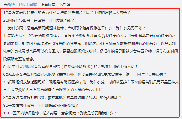 这也是事情发生这么久之后,浙江卫视方面第一个出来哀悼高以翔的人。