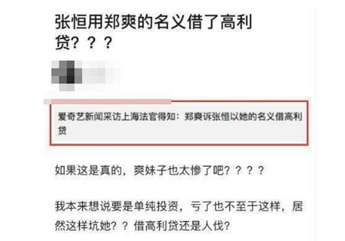 2019年11月郑爽被曝与男友张恒已分手,但两人并非好聚好散,疑似还存在有经济纠纷,会通过法律途径来解决,甚至网曝张恒竟用了郑爽的名义借高利贷 。前段时间,郑爽现身的法院,有媒体指出,郑爽这一次是正式起诉张恒。