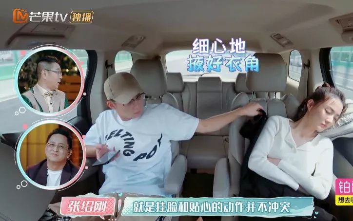 看到徐璐靠在车上想睡觉,他便主动递上靠枕,还帮她把衣服盖好。