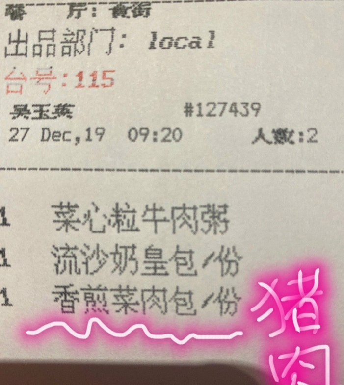 事情起源于张嘉倪早上点外卖吃早餐,她点了牛肉粥、流沙奶黄包,以及香煎菜肉包,看上去丰富有营养,应该是非常美味了。
