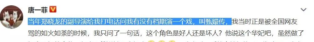 开头先解释一下那个情况,说:当年郑晓龙的副导演请她演甄嬛传。
