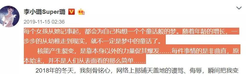 我小璐呢,说了一大堆农户爷爷煮饭烧水劈柴暖炕,最后来句:这也是我十几年前的事了,按道理我早该忘记了,但你们偷拍我,我必须用人家的真情来斥责你们的冷漠!