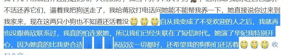 唐一菲:不是的,是我当时换了手机,就没有蒋欣的联系方式了,现如今有感而发,仅此而已!