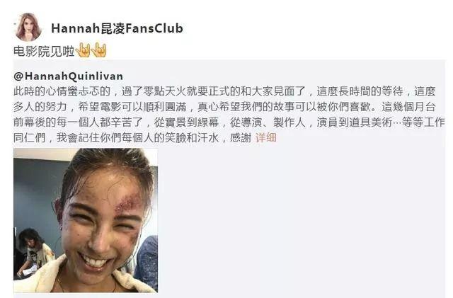 为拍摄灾难大片,昆凌曾发微博透露自己毁容照,一头湿漉漉的马尾,脸上满是伤痕污渍,笑得非常的灿烂,和平时光鲜亮丽的样子形成鲜明对比,看来昆凌为了电影也是很拼啊!