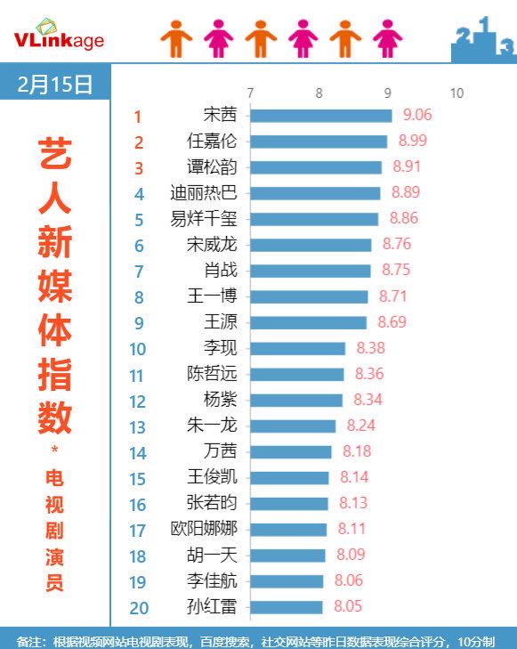 果然是男演员演高甜剧很容易被女粉丝厚爱,尽管该剧已经收官,但任嘉伦依然冲到电视剧演员的第二名,仅在宋茜之后,而唐松韵第三,迪丽热巴第四,上榜的演员很多是剧在播出,所以大家可以想象任嘉伦真的火了,虽然早婚早育,但毫不影响演员的魅力绽放。