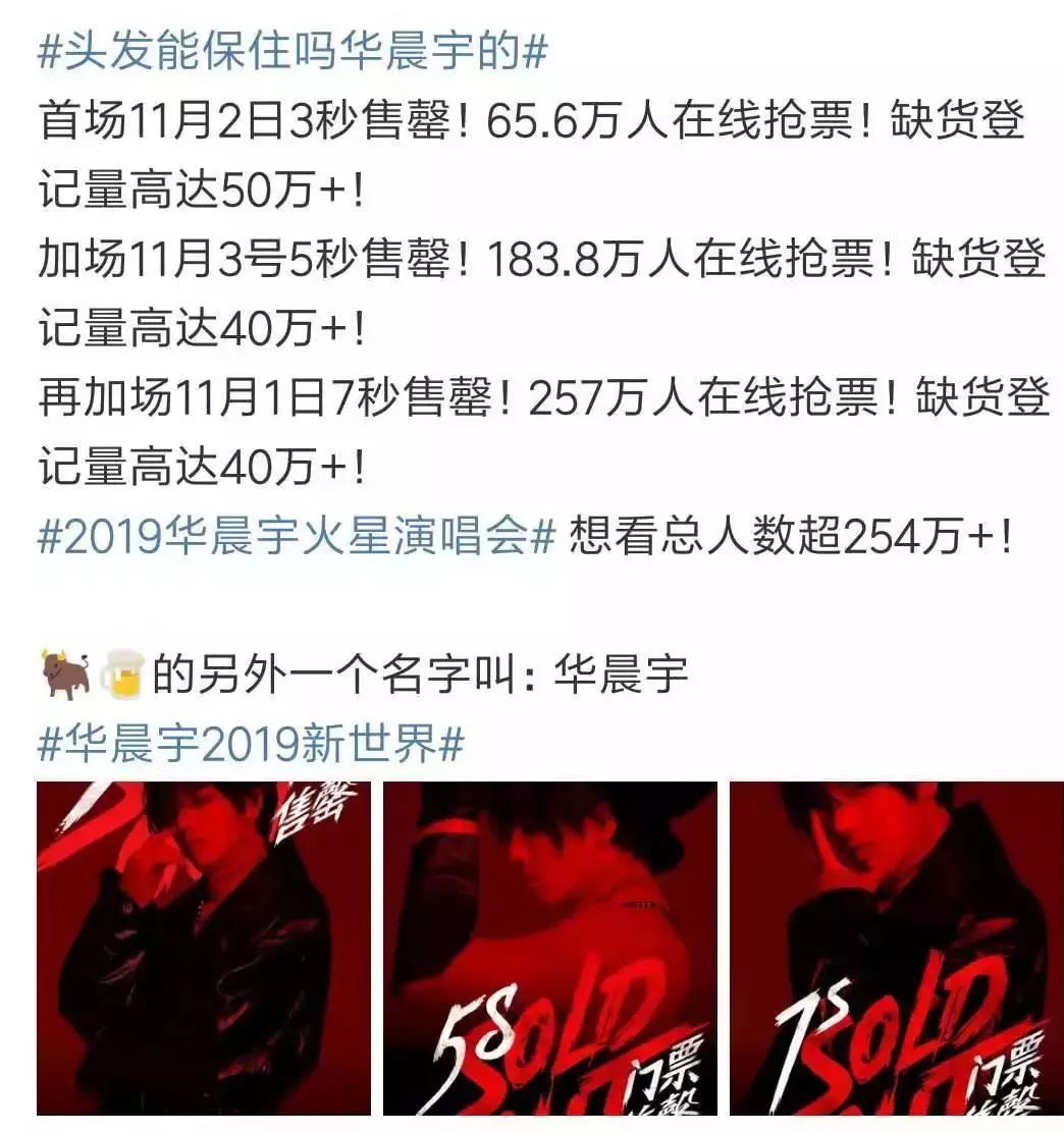 先不提进场人次,光是开票时歌迷们的抢票速度就让人咂舌,能容纳万人的体育馆竟然在不到十秒的时间完全售罄。作为新生代的华语歌手,能在国内连开三场五万人以上的演唱会,并且座无虚席,足以看出华晨宇的人气不容小觑。