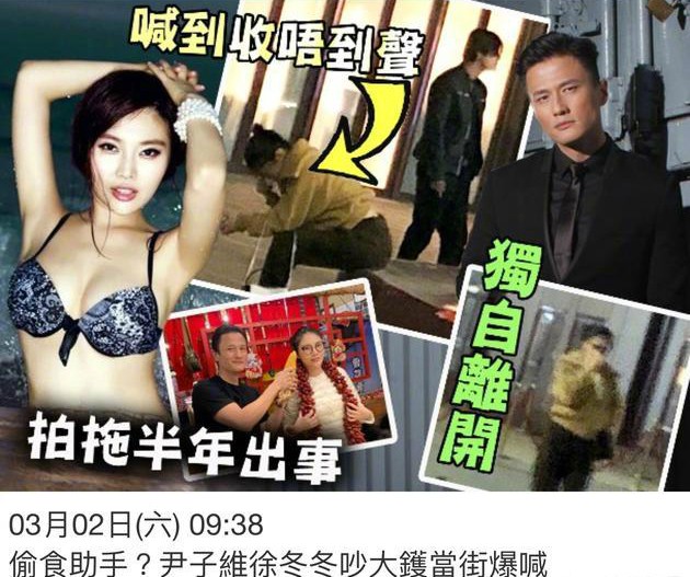 谁知到了3月,徐冬冬和尹子维就被拍到在街头吵架,港媒还猜测是尹子维和TVB女艺人张秀文走得太近所致。
