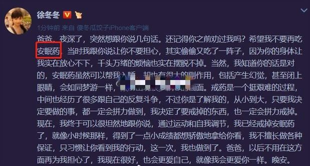 而徐冬冬也确实曾在微博提到过自己睡觉时需要吃安眠药。