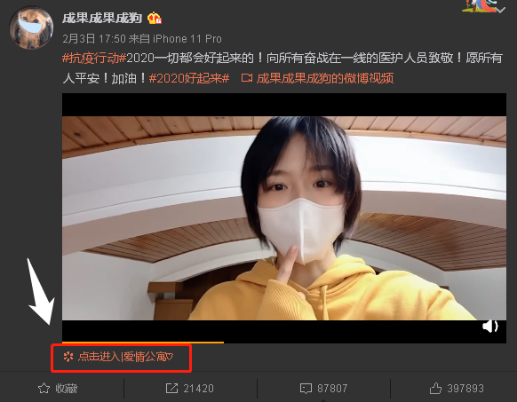 还有前段时间,成果发声了一个“愿2020疫情早点好起来,并向所有医务人员致敬”的视频,引发了8万多人评论,39万多人点赞。网友还纷纷关心起了她的健康,并提醒她的口罩不合格,请好好注意。