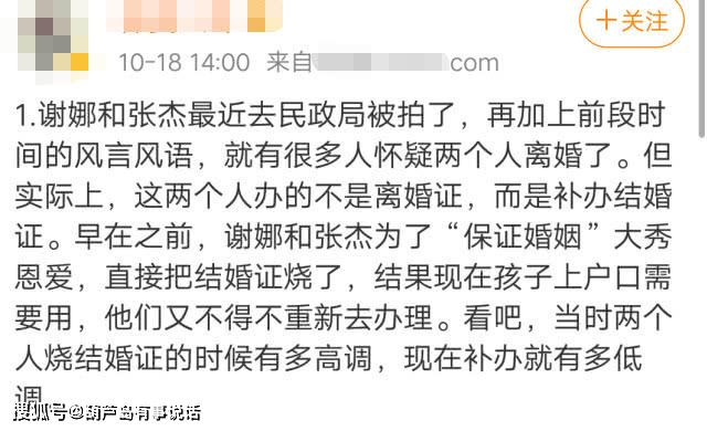 因为关注的人多,所以,不管是谢娜还是张杰。在节目中或是访谈中的一些话语更是容易被大家误会。此前在《妻子的浪漫旅行3》中有一集讲到,作为妻子会不会吃醋老公跟异性好友单独约会?谢娜表示不会限制老公交友自由,更直言张杰跟张靓颖是好朋友,还经常会约着去看电影等。而这些言行往往会被网友或是一些大V加大解读,从而越传越夸张,最主要的原因还是人红,关注他们的人实在是太多了。